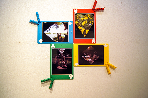 撮影した写真に、トランプのマーク型のマスクが写っています。