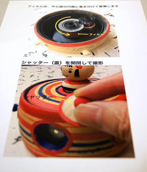 五角形マスにブローニーのカメラのフィルム部分を装填して作ってあります。