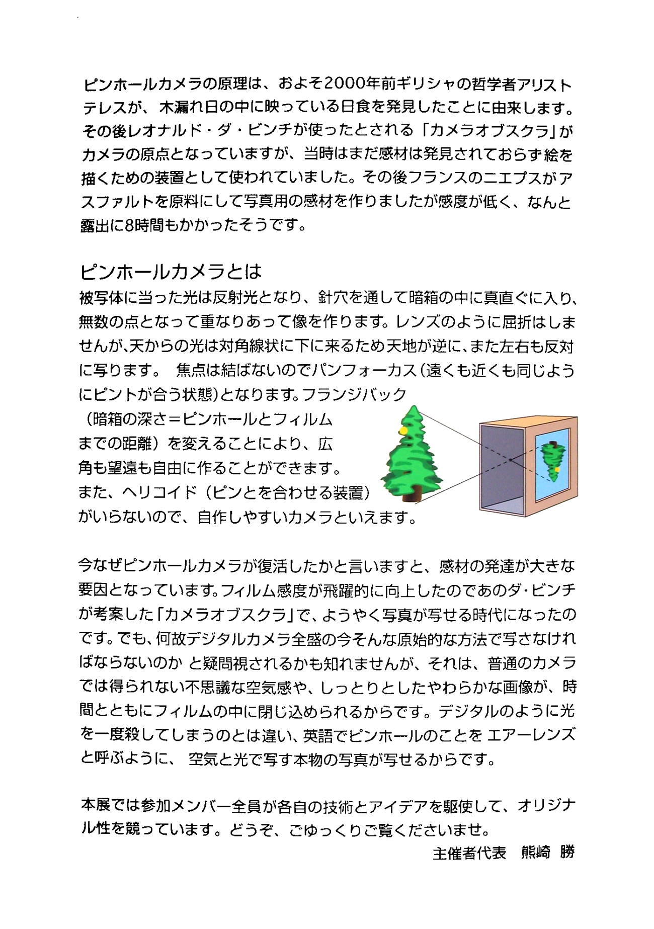 創作ピンホールカメラ展の会の主催者の熊崎さんの説明を掲載しておきます。